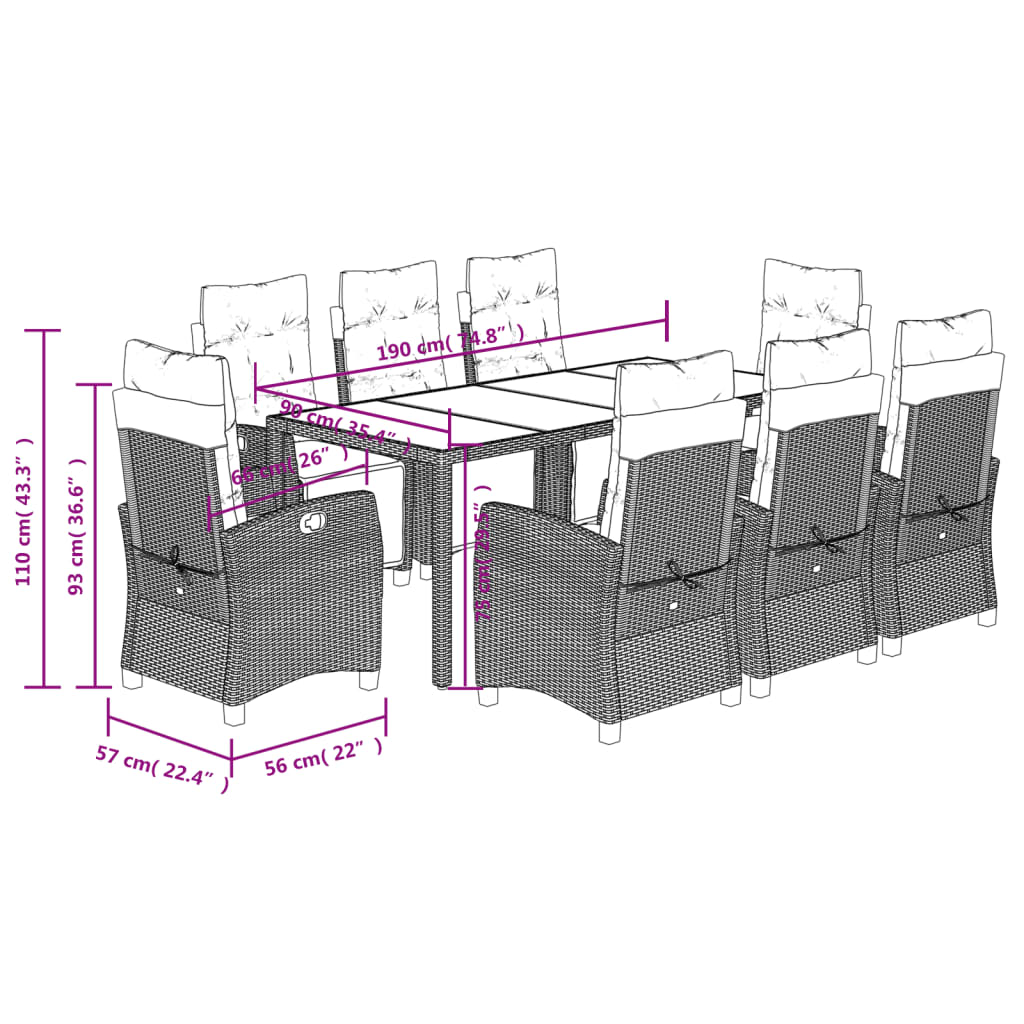 9-tlg. Garten-Essgruppe mit Kissen Grau Poly Rattan
