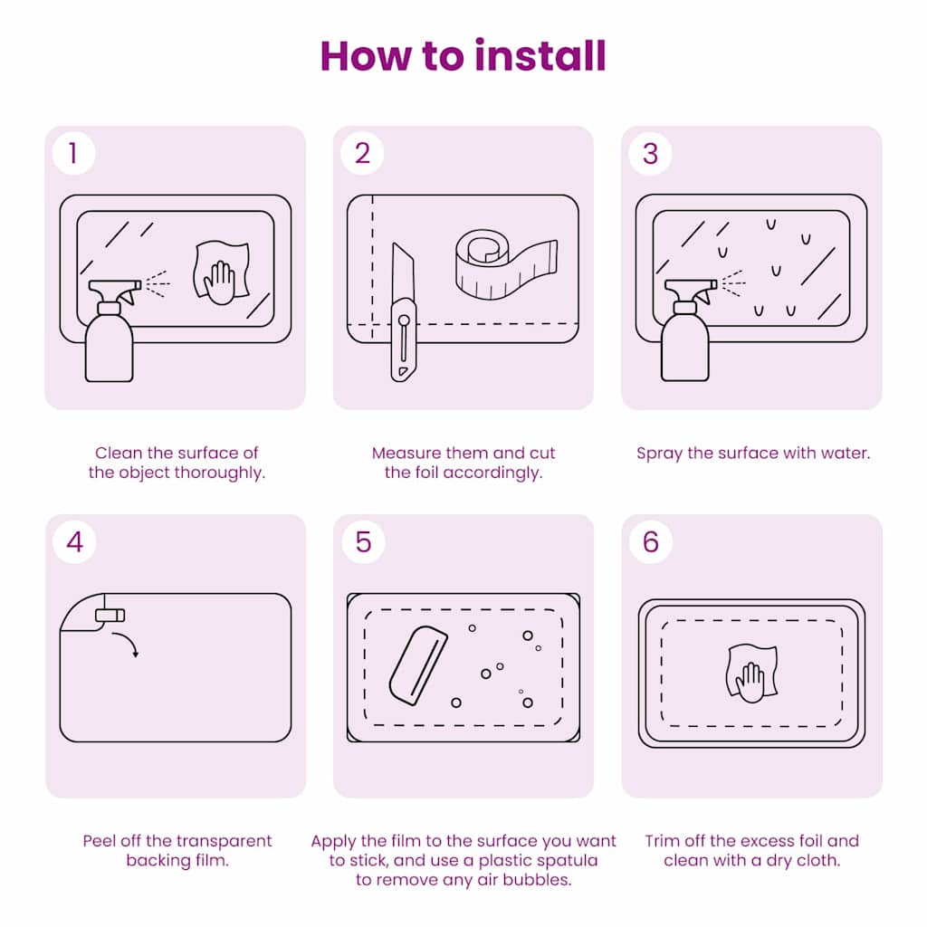 Diese frosted Fensterfolie ist eine praktische und elegante Möglichkeit, mehr Privatsphäre zu haben, während der Raum hell bleibt. Hergestellt aus hochwertigem PVC, wird jedes Fenster zu einem coolen Blickfang, ohne das natürliche Licht zu beeinträchtigen. Ideal für alle, die Privatsphäre wollen, ohne auf schwere Vorhänge zurückzugreifen, ist diese Folie eine stilvolle Alternative für Schlafzimmer und Wohnzimmer. Selbstklebend: Dank der selbstklebenden Rückseite lässt sich die frosted Fensterfolie ganz einfach auf jede glatte Fläche aufbringen. Du kannst sie einfach auf die passende Größe zuschneiden und während der Montage wieder neu positionieren, um eine perfekte Haftung ohne Blasen zu gewährleisten. So brauchst du keine unordentlichen Kleber oder zusätzlichen Werkzeuge, was die Anwendung super einfach macht. Privatsphäre: Verbesser deine Privatsphäre, während das Licht durch die frosted Fensterfolie fließen kann. Das Design schafft ein Gefühl von Offenheit, ohne störende Barrieren, perfekt für Räume, in denen Diskretion wichtig ist, wie Badezimmer und Büros, tagsüber wie nachts. Robustes PVC: Diese Folie besteht aus haltbarem PVC-Material, das widerstandsfähig gegen Feuchtigkeit ist und sich daher super für feuchte Räume eignet. Das Material gibt ihr ein modernes Aussehen und schützt vor unerwünschten Blicken – sowohl drinnen als auch draußen. Die Stärke des PVC sorgt dafür, dass sie lange hält und nicht verzieht oder vergilbt. Vielseitig einsetzbar: Ideal für verschiedene Räume wie Schlafzimmer und Wohnzimmer, bietet die Folie viele Dekorationsmöglichkeiten. Vom Büro bis zum Badezimmer ist sie eine tolle Wahl, um Privatsphäre zu schaffen und sich an verschiedene Bedürfnisse anzupassen. Einfache Pflege: Die Folie sollte auf einer sauberen, glatten Oberfläche angebracht werden. Sie ist pflegeleicht und bleibt ganz einfach schön – einfach mit einem feuchten Tuch abwischen, ohne spezielle Reinigungsmittel.