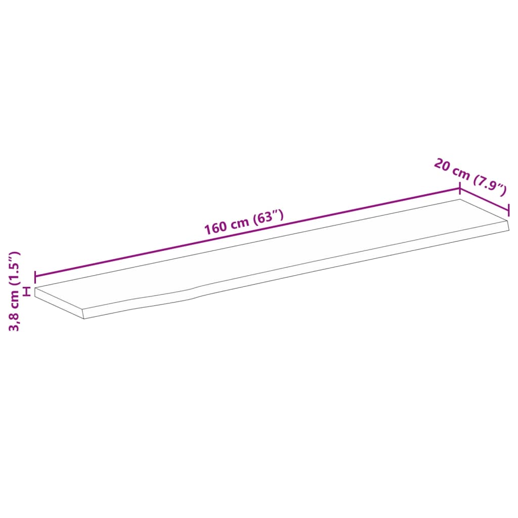 Verleihe deinem Tisch neues Leben mit dieser Holztischplatte. Sie ist eine hervorragende Lösung für die Auffrischung deines Tisches zu Hause oder in einem gewerblichen Umfeld. Massives Mangoholz: Massives Mangoholz ist ein starkes, tropisches Hartholz, aus dem robuste Möbelstücke hergestellt werden. Die optisch ansprechende Holzmaserung macht jedes Möbelstück zu einem Unikat. Vielseitig einsetzbar: Die Ersatztischplatte kann je nach Bedarf mit verschiedenen Untergestellen kombiniert werden. Naturkante: Die Möbelplatte aus Holz weist eine rustikale Naturkante auf. Dabei sind Aststellen, Risse, leicht geschwungene Formen und verschiedene Farbtöne Teil davon und machen jedes Möbelstück zu einem Unikat. Einfache Reinigung: Die glatte Tischplatte lässt sich mit einem feuchten Tuch leicht reinigen. Gut zu wissen:Jedes Stück ist ein Unikat, das in Farbe und Maserung variiert. Die Lieferung erfolgt in zufälliger Reihenfolge, wodurch die Exklusivität und Individualität deines Produkts gewährleistet wird.Aufgrund der natürlichen Form von Massivholz mit Baumkante kann die Breite leicht um +1-2 cm oder –3-5 cm variieren.