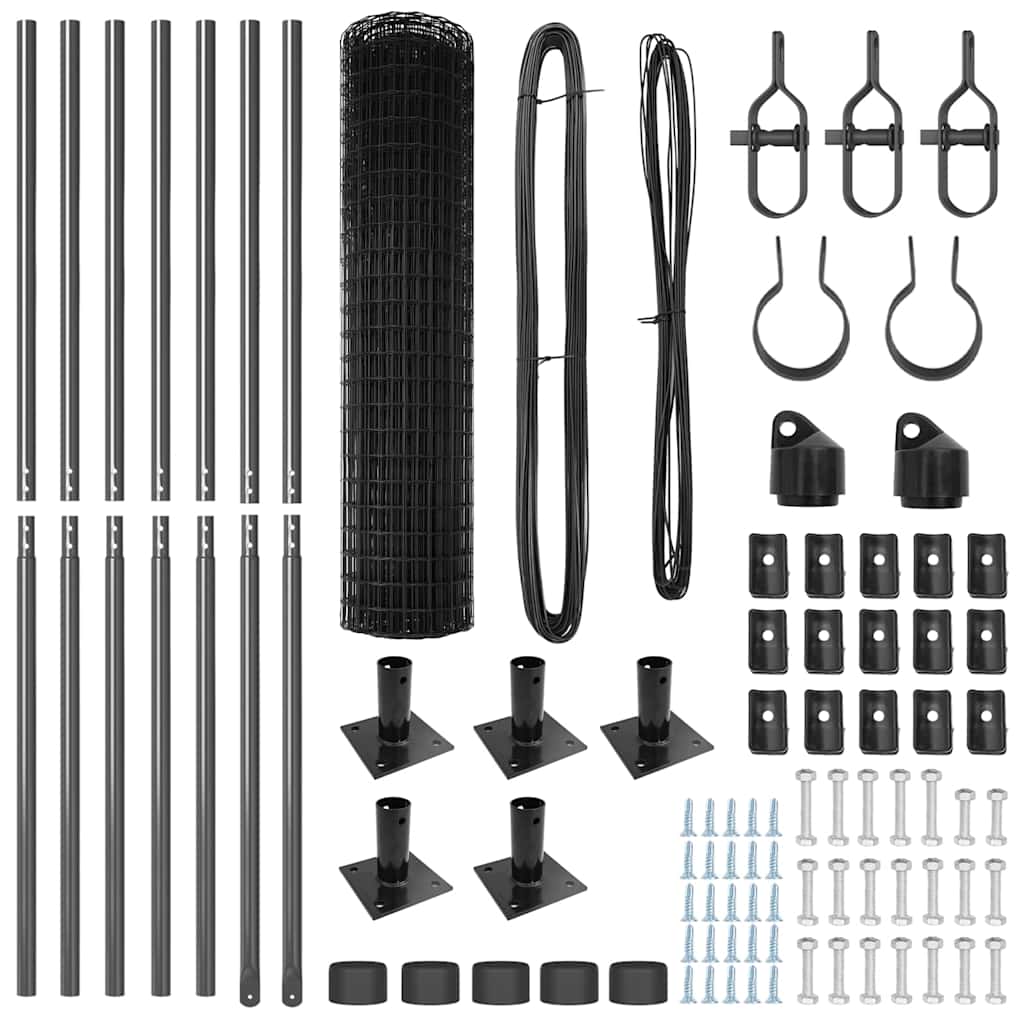 Zaun mit Pfosten Grau 1 x 10 m Stahl