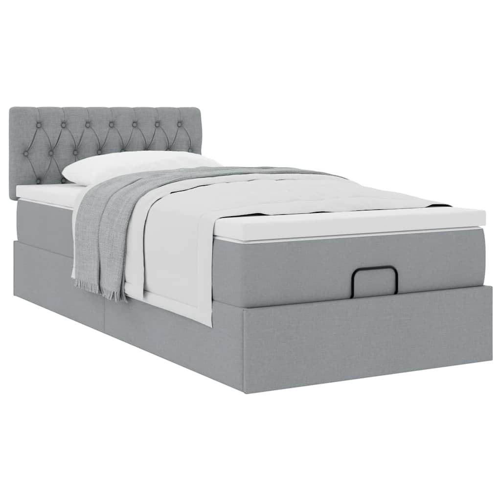 Ottoman-Bett mit Matratze Hellgrau 90x190 cm Stoff