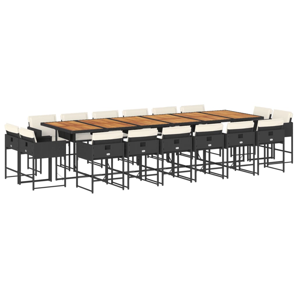 17-tlg. Garten-Essgruppe mit Kissen Schwarz Poly Rattan
