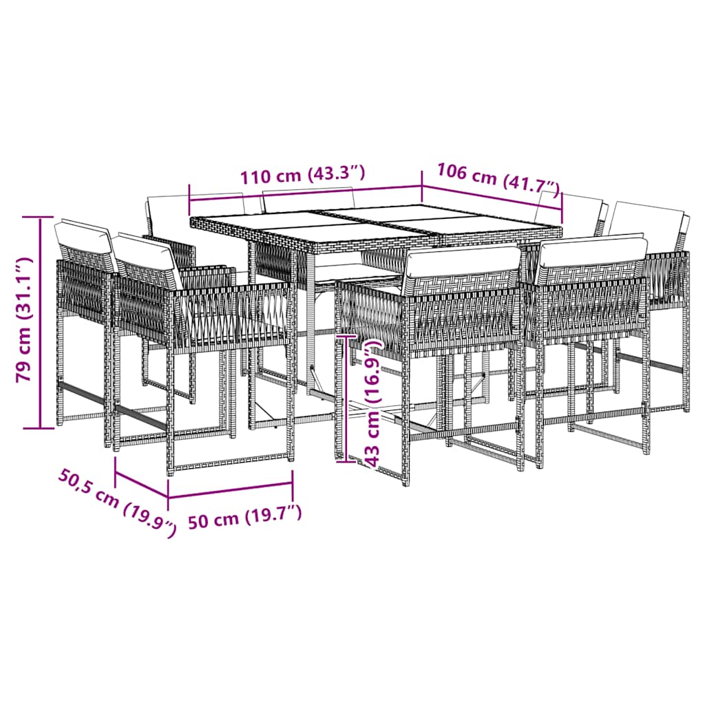 9-tlg. Garten-Essgruppe mit Kissen Grau Poly Rattan