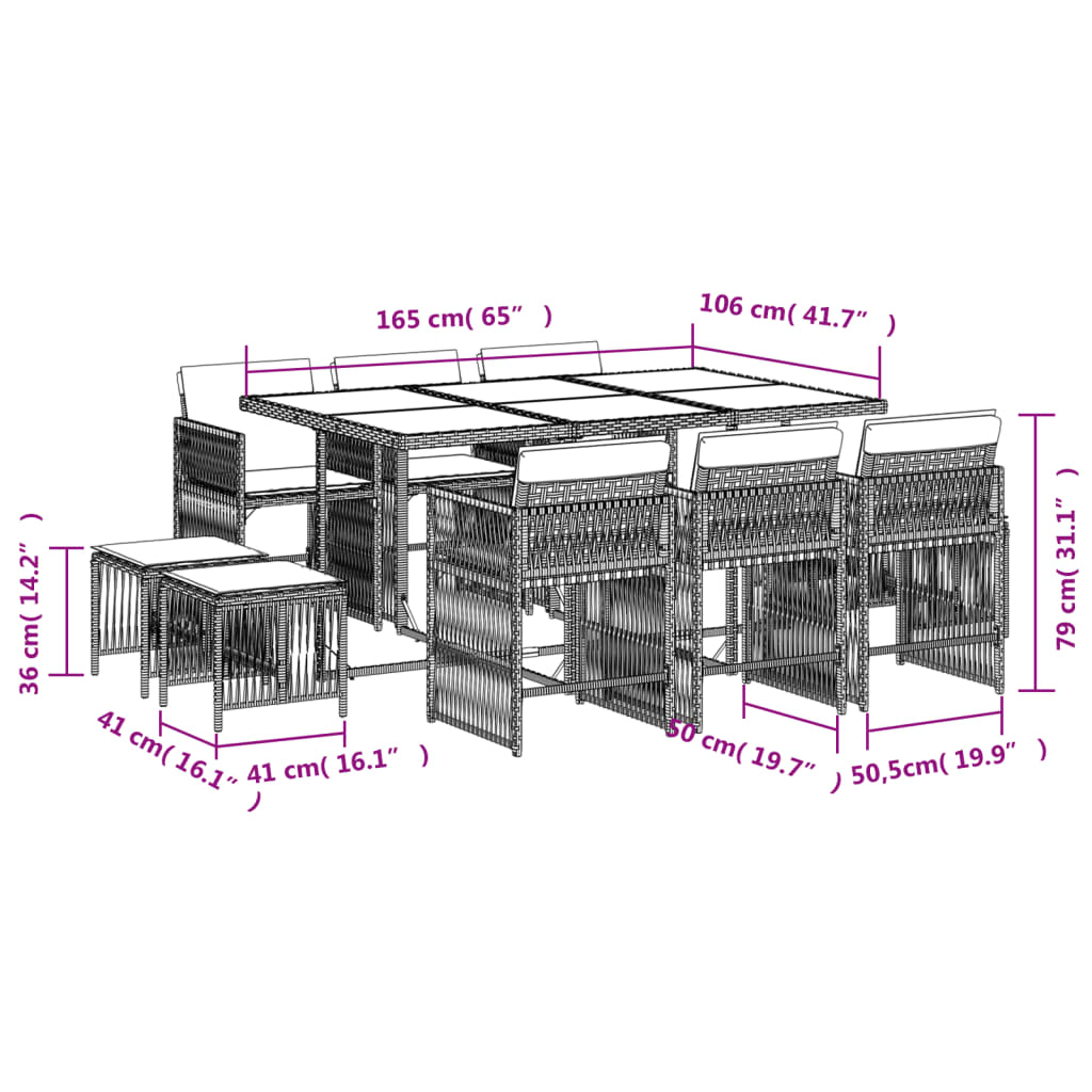 11-tlg. Garten-Essgruppe mit Kissen Beigemischung Poly Rattan