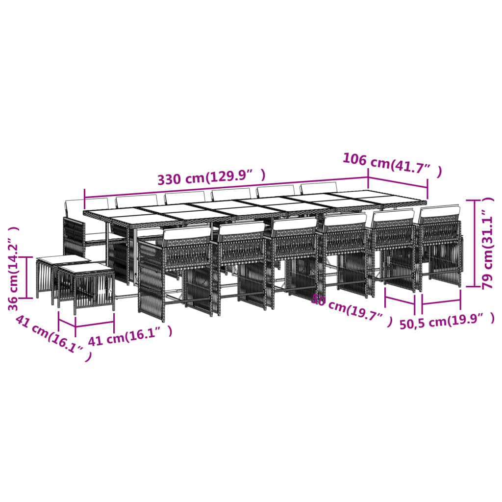 17-tlg. Garten-Essgruppe mit Kissen Hellgrau Poly Rattan
