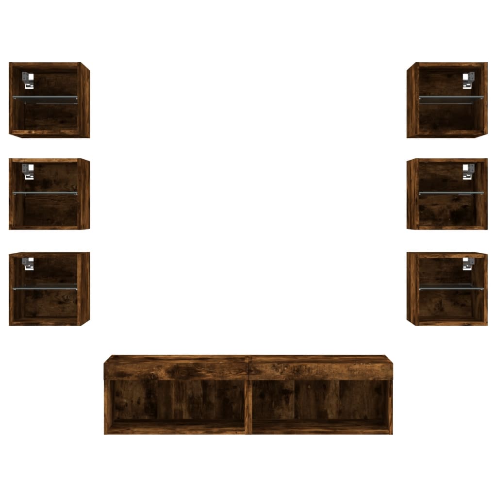 8-tlg. Wohnwand mit LED-Beleuchtung Räuchereiche Holzwerkstoff
