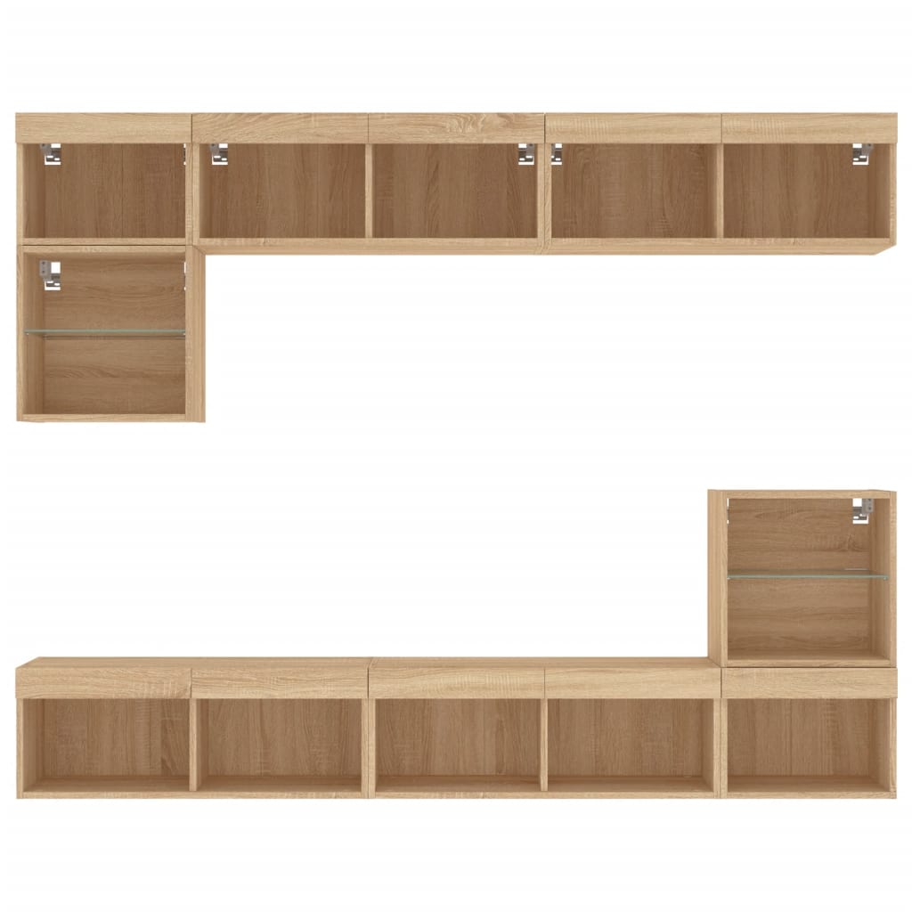 7-tlg. TV-Wohnwand mit LED-Leuchten Sonoma-Eiche