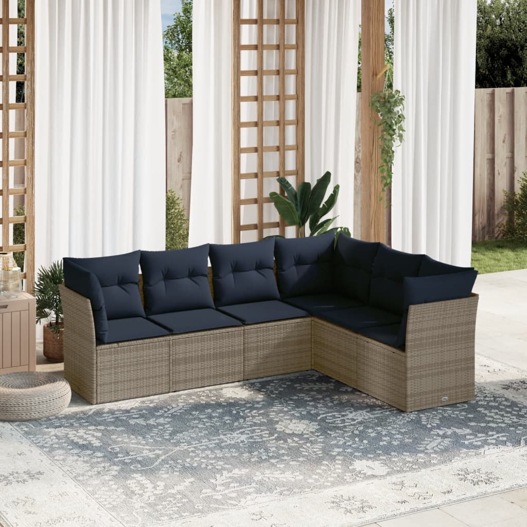 6-tlg. Garten-Sofagarnitur mit Kissen Grau Poly Rattan
