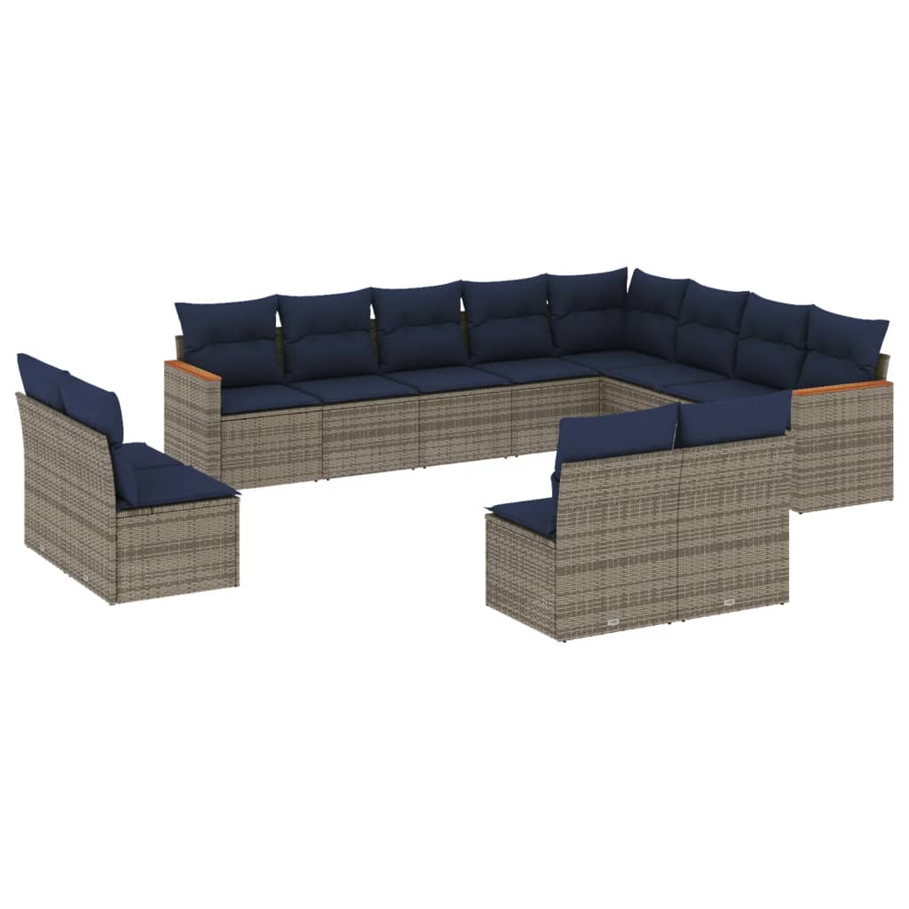 13-teiliges Gartensofa-Set mit Kissen, grau, Polyrattan