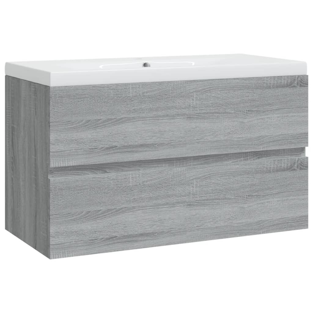 Waschbeckenschrank mit Einbaubecken Grau Sonoma Holzwerkstoff