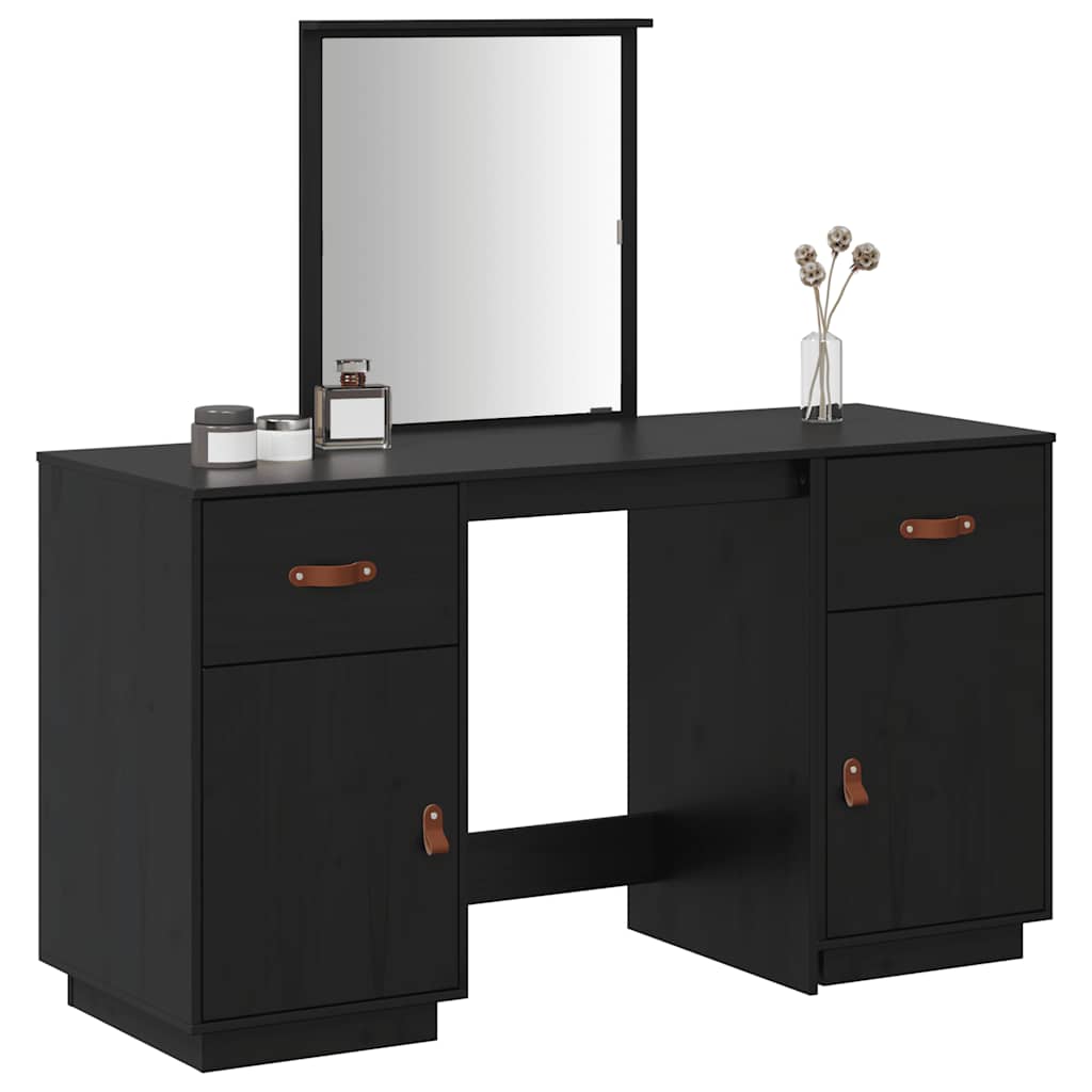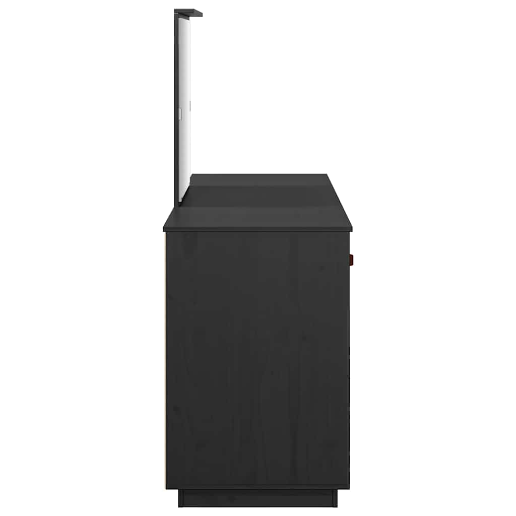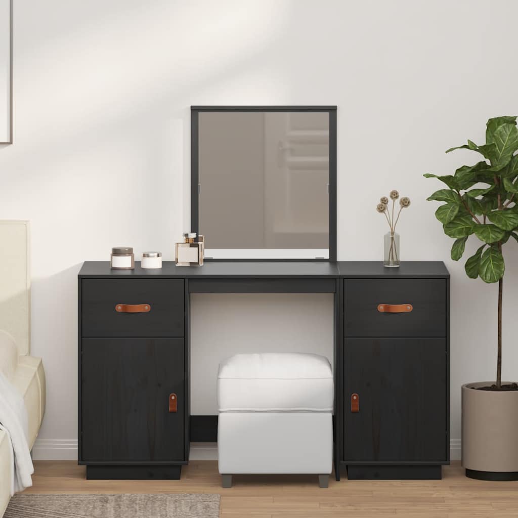 Schminktisch-Set mit Spiegel Schwarz Massivholz Kiefer