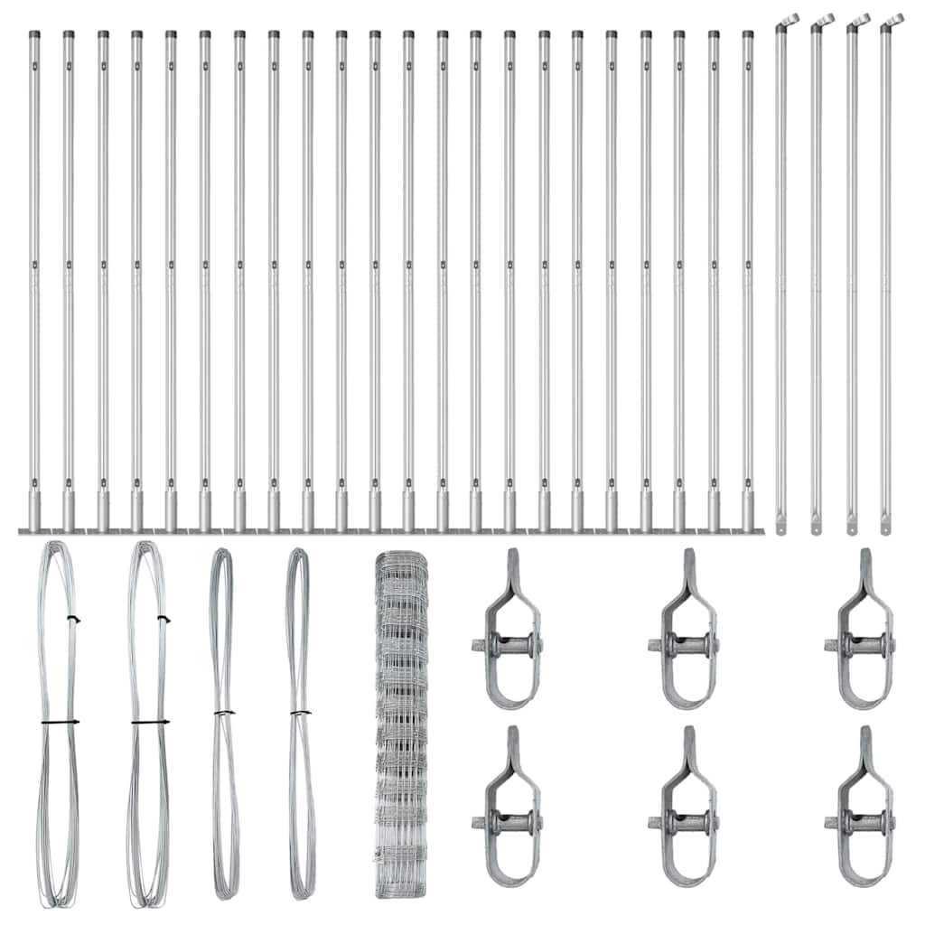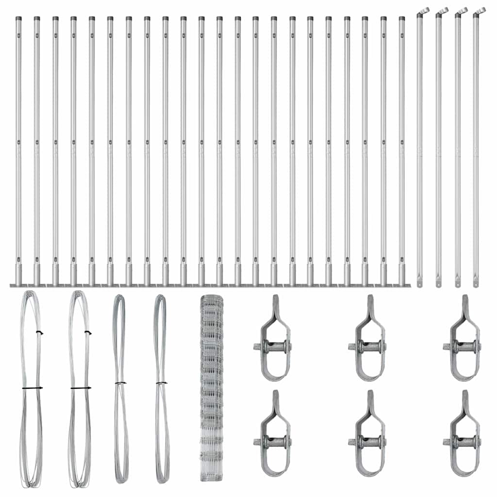 Zaun mit Pfosten Silber 1,4 x 25 m Stahl