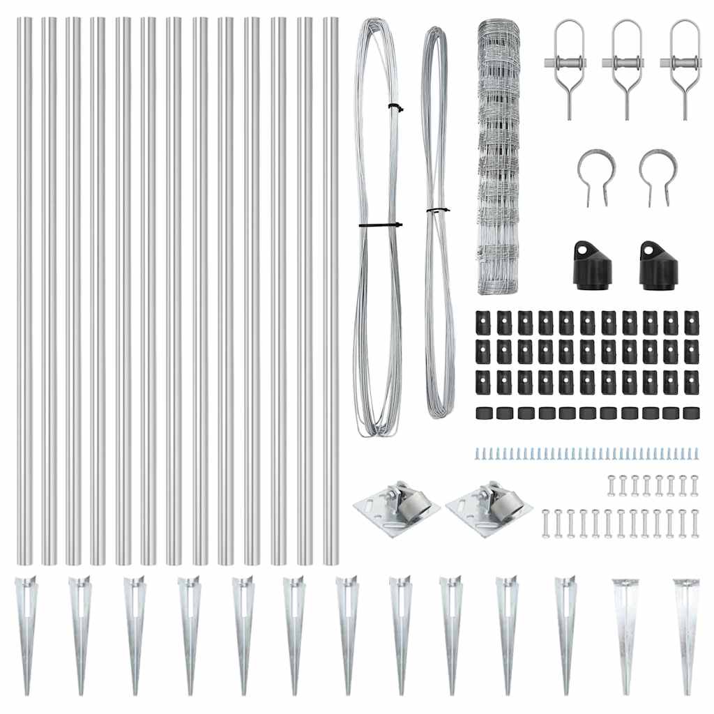 Zaun mit Pfosten Silber 1,5 x 10 m Stahl