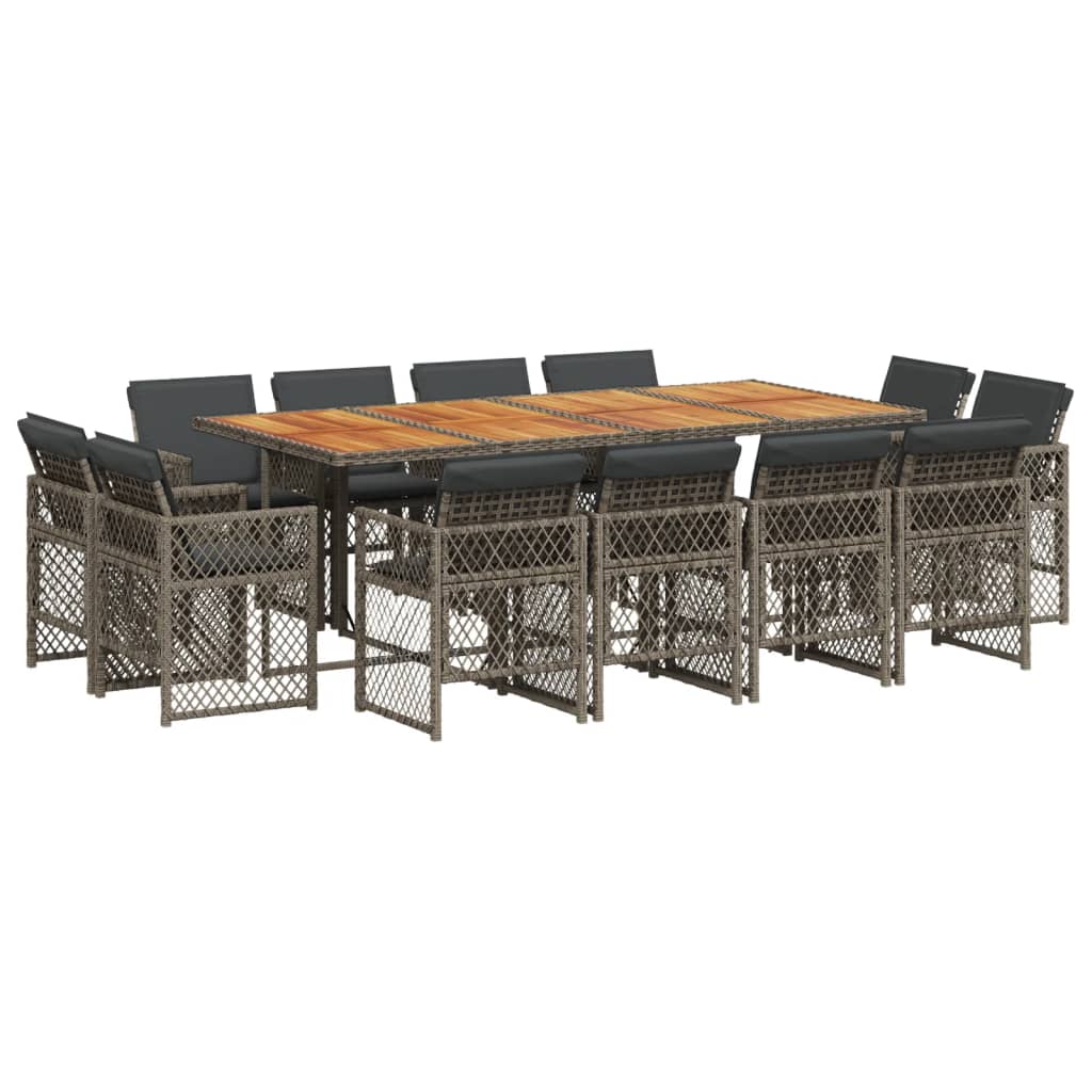 13-tlg. Garten-Essgruppe mit Kissen Grau Poly Rattan
