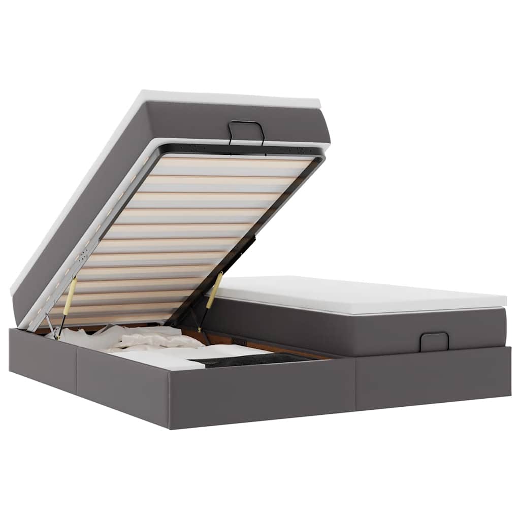 Ottoman-Bett mit Matratze Grau 160x200 cm Kunstleder