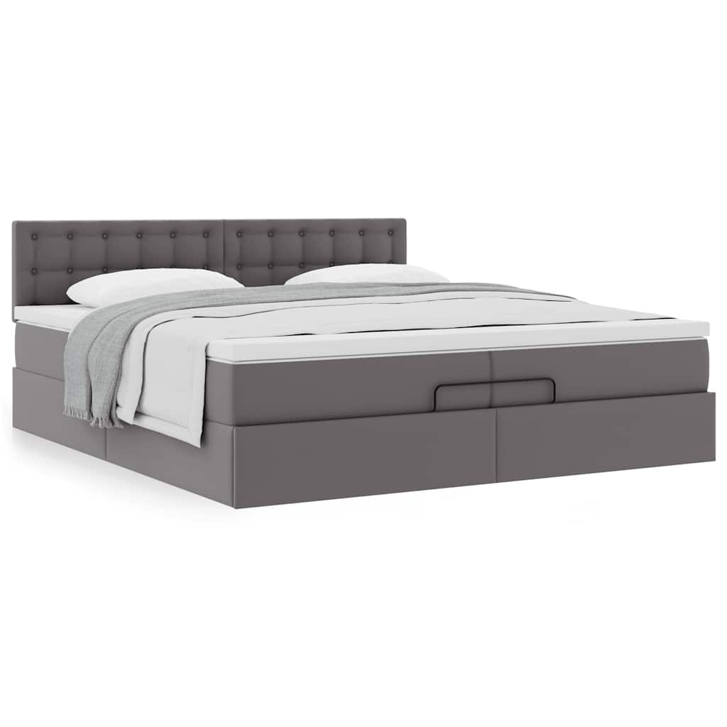 Ottoman-Bett mit Matratzen Grau 200x200 cm Kunstleder