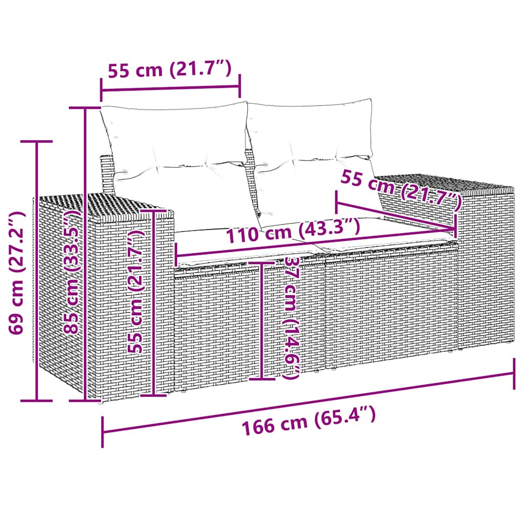 Entspanne dich und genieße die Natur auf diesem bequemen 2-Sitzer-Gartensofa! Langlebiges Material: PE-Rattan, auch als Poly Rattan bekannt, ist ein robustes, pflegeleichtes synthetisches Material, das die Optik von natürlichem Rattan aufweist. Es kennzeichnet sich durch ein geringes Eigengewicht und lässt sich einfach reinigen. Aufgrund seiner Haltbarkeit und Witterungsbeständigkeit wird es häufig bei der Herstellung von Gartenmöbeln verwendet.Bequemes Sitzerlebnis: Dank der dick gepolsterten Kissen bietet das Gartensofa höchsten Sitzkomfort. Die breiten Armlehnen bieten zudem einen praktischen Platz, um dein Handy, Getränke oder andere Kleinigkeiten griffbereit zu halten.Abnehmbarer und waschbarer Bezug: Diese Sitzkissen verfügen über abnehmbare Bezüge für einfaches Waschen und Pflegen.Modulares Design: Dank des modularen Designs lassen sich die Gartenmöbel völlig flexibel und einfach umstellen, um deinen Außenbereich ganz individuell zu gestalten. Gut zu wissen:Wir empfehlen dir, deine Gartenmöbel mit einer wasserdichten Hülle zu schützen, um lange Zeit eine ansprechende Optik aufzuweisen.