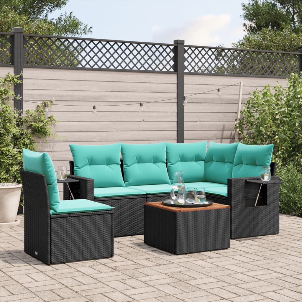 6-tlg. Garten-Sofagarnitur mit Kissen Schwarz Poly Rattan