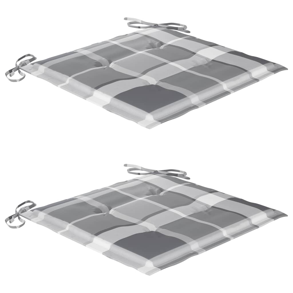 Gartenstühle 2 Stk. Graue Karomuster Kissen Massivholz Teak
