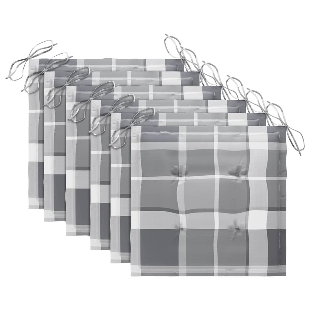 Gartenstühle Graue Karomuster-Kissen 6 Stk. Massivholz Teak