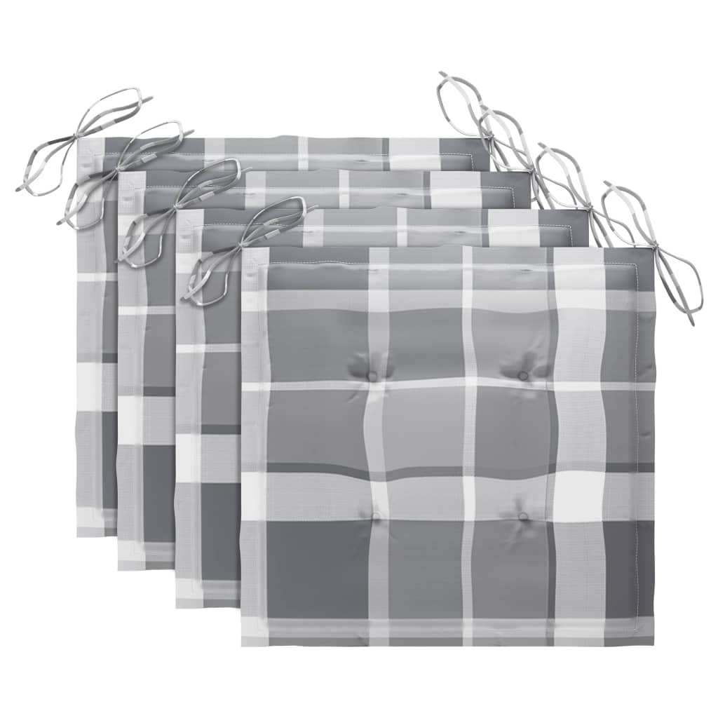Gartenstühle Graue Karomuster-Kissen 4 Stk. Massivholz Teak