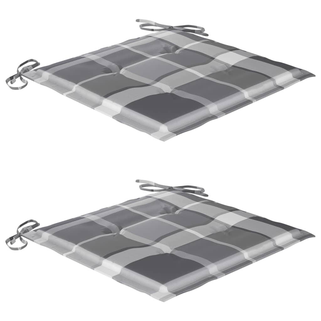 Gartenstühle Graue Karomuster-Kissen 2 Stk. Massivholz Teak