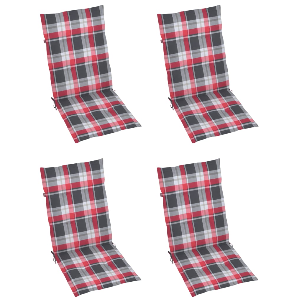 Gartenstühle Rote Karomuster-Kissen 4 Stk. Massivholz Teak