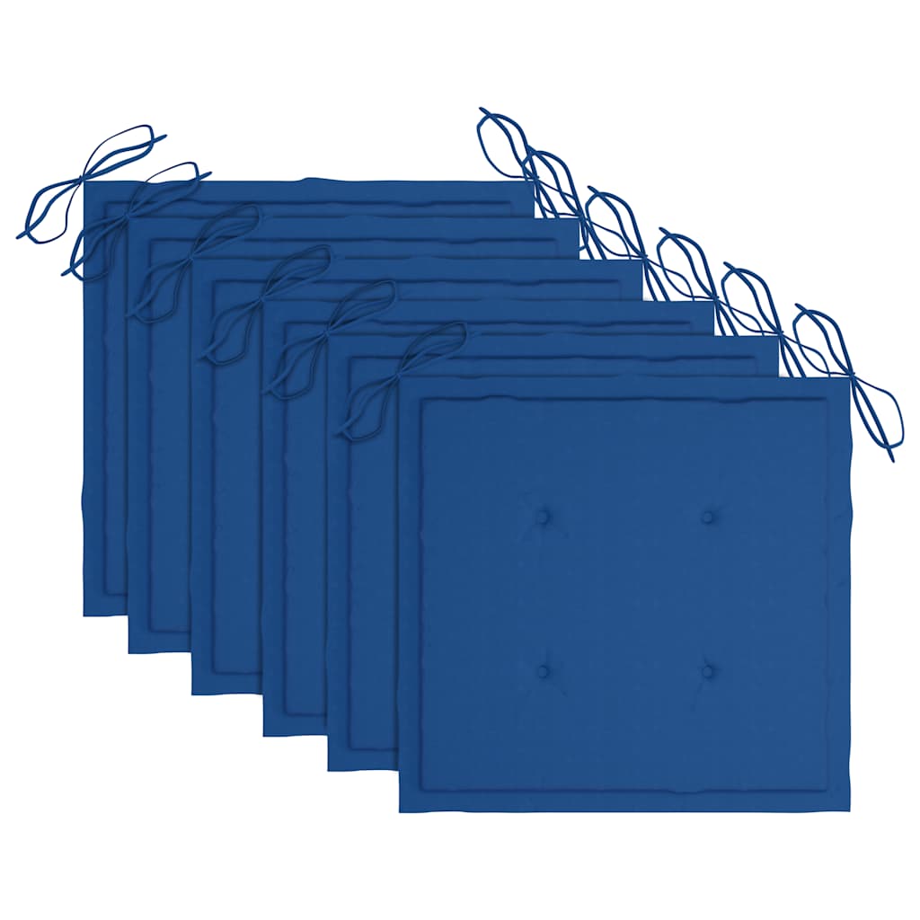 Gartenstühle mit Königsblauen Kissen 6 Stk. Massivholz Teak