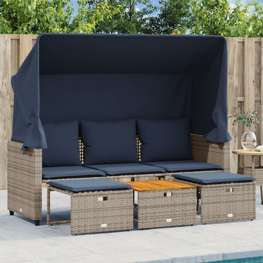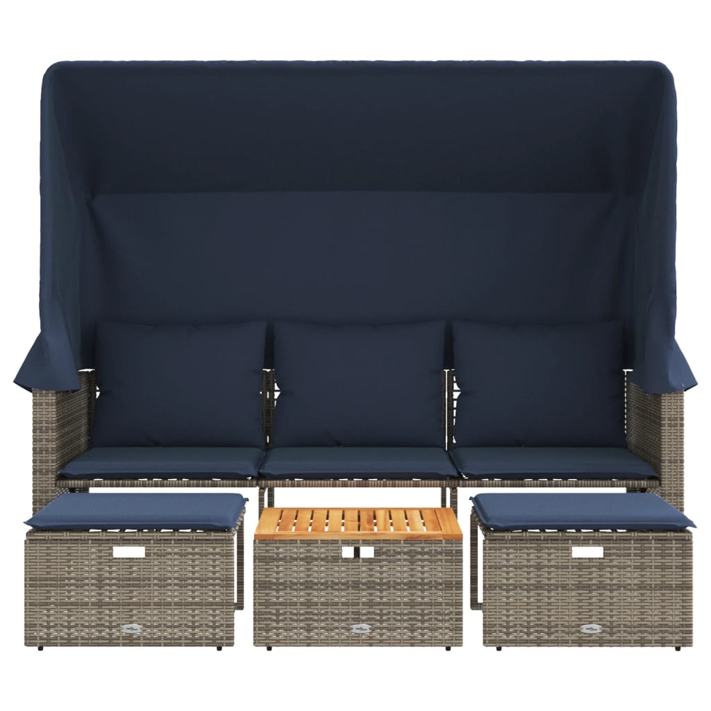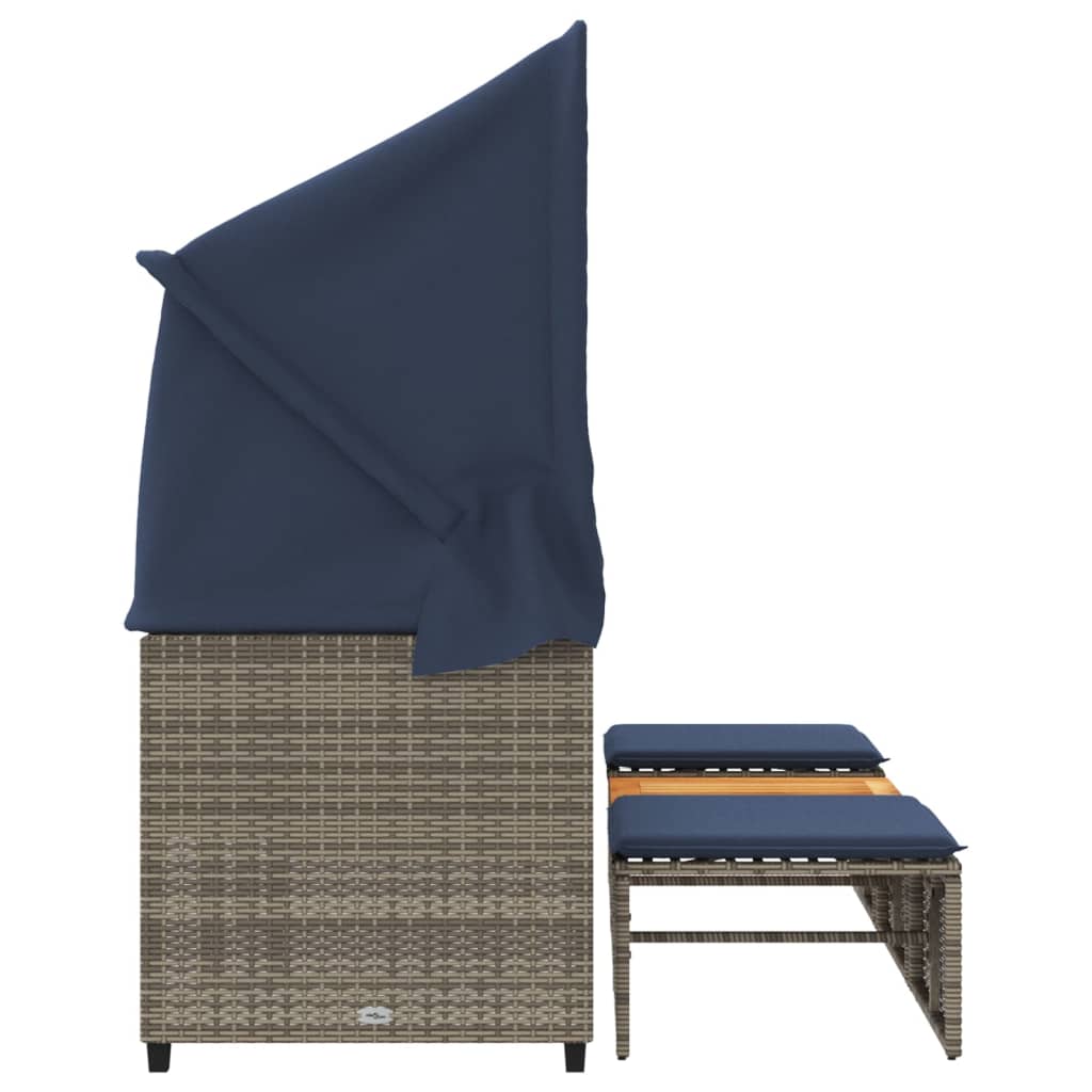 Gartensofa 3-Sitzer mit Baldachin und Hockern Grau Poly Rattan