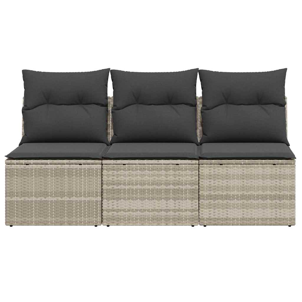 Gartensofa mit Kissen 3-Sitzer Hellgrau Poly Rattan