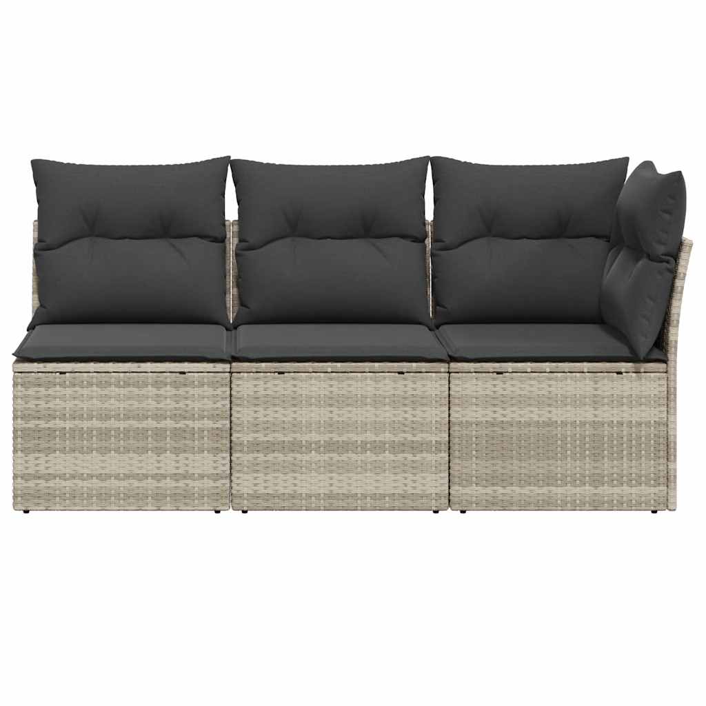 Gartensofa mit Kissen 3-Sitzer Hellgrau Poly Rattan