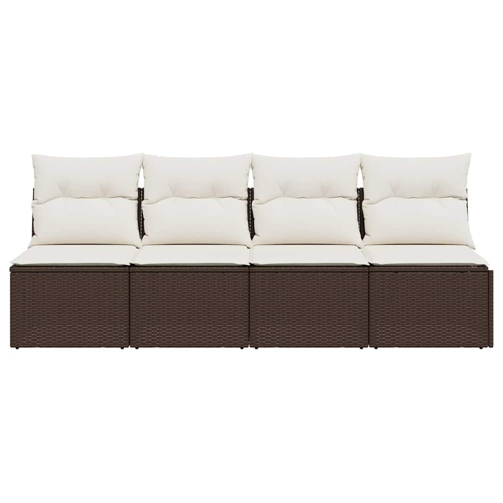 Gartensofa mit Kissen 4-Sitzer Braun Poly Rattan