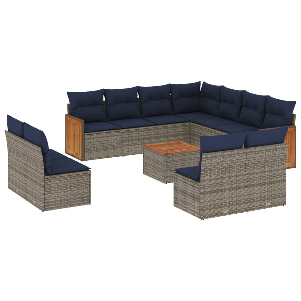12-tlg. Garten-Sofagarnitur mit Kissen Grau Poly Rattan