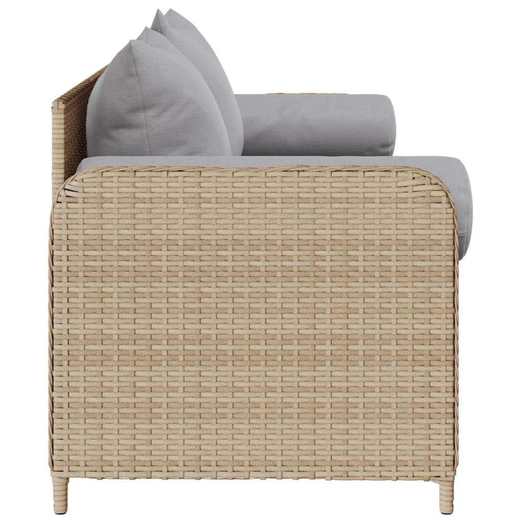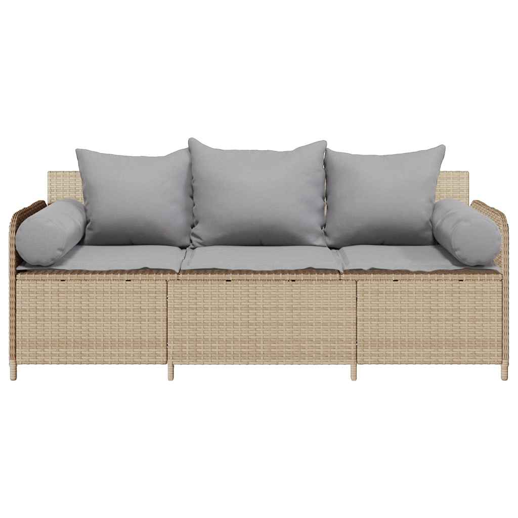 Gartensofa mit Kissen 3-Sitzer Beige Poly Rattan