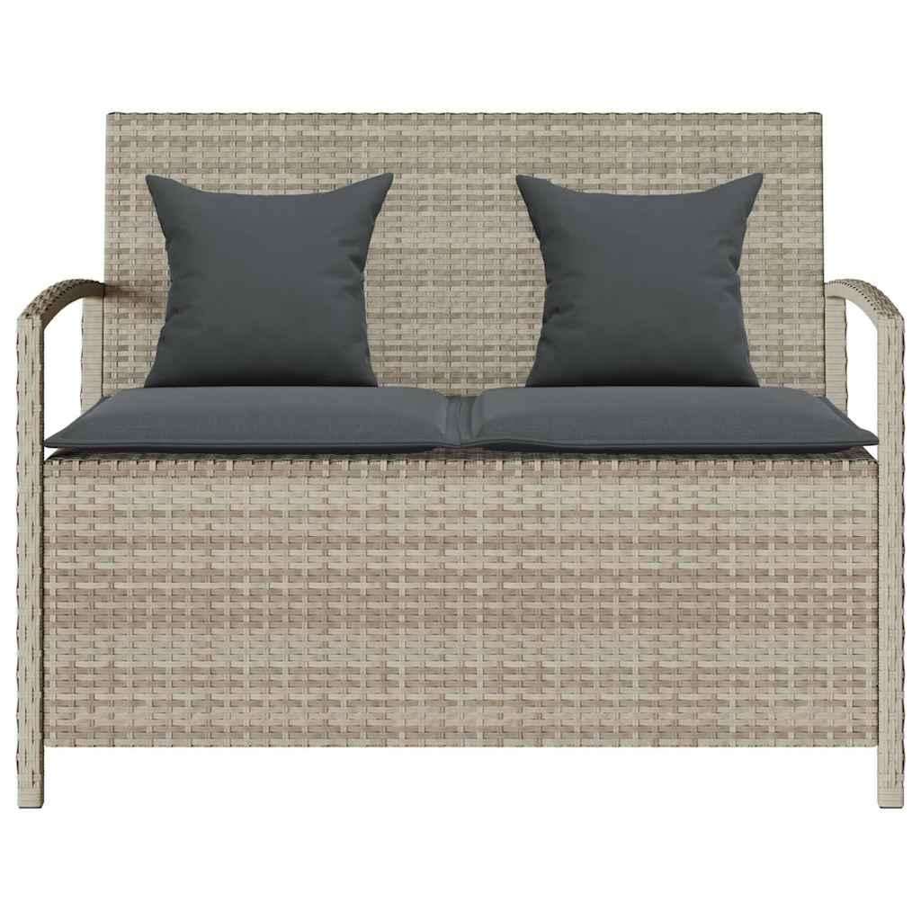 Gartenbank mit Kissen Hellgrau 110x30x40,5 cm Poly Rattan