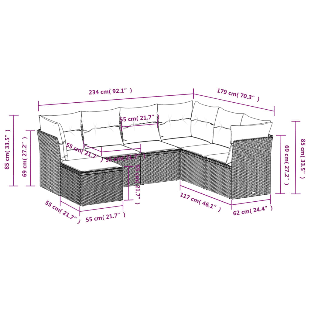 7-tlg. Garten-Sofagarnitur mit Kissen Schwarz Poly Rattan