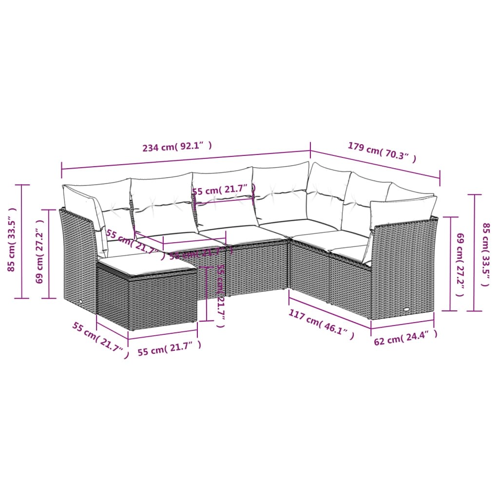 7-tlg. Garten-Sofagarnitur mit Kissen Braun Poly Rattan