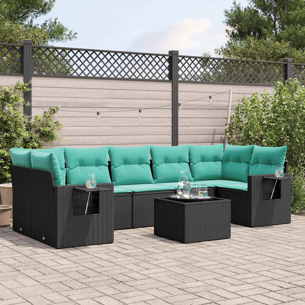 8-teiliges Gartensofa-Set mit Kissen, schwarzes Polyrattan
