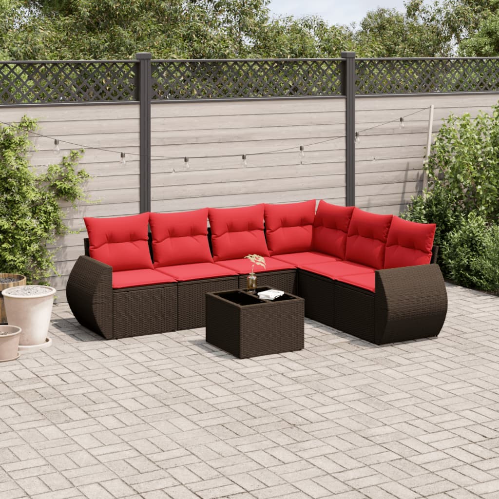 7-teiliges Gartensofa-Set mit Kissen, braun, Polyrattan