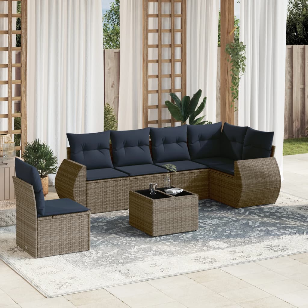 7-tlg. Garten-Sofagarnitur mit Kissen Grau Poly Rattan
