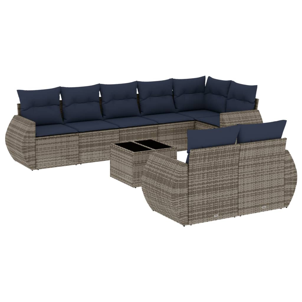 9-teiliges Gartensofa-Set mit Kissen, grau, Polyrattan