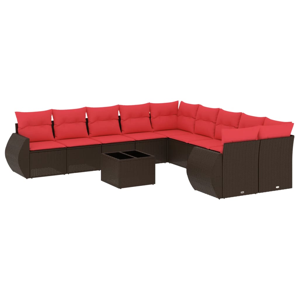 10-teiliges Gartensofa-Set mit Kissen, braun, Polyrattan