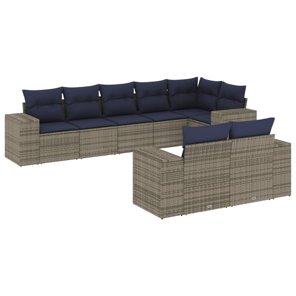 8-teiliges Gartensofa-Set mit Kissen, grau, Polyrattan