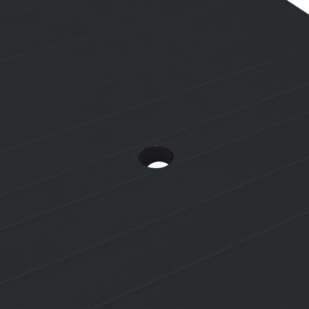 Unsere Garten-Essgruppe ist eine hervorragende Wahl für Mahlzeiten unter freiem Himmel - ob im Garten, auf der Terrasse oder dem Campingplatz. Die Garten-Essgruppe besteht aus strapazierfähigem Kunststoff, wodurch der Tisch und die Stühle wetterfest und leicht zu reinigen sind. Dieses Ess-Set aus Kunststoff ist außerdem leicht im Gewicht und daher einfach umher zu bewegen. Der Gartentisch verfügt über ein Sonnenschirmloch, sodass Sie ihn mit einem Sonnenschirm verwenden und Sie sich im Schatten abkühlen können. Die Rückenlehnen der Stühle lassen sich in 4 Positionen einstellen, so dass Sie immer die bequemste Position finden können. Die Stühle können bei Nichtgebrauch platzsparend zusammengeklappt werden. Die Lieferung beinhaltet 1 Tisch und 10 Klappstühle.
