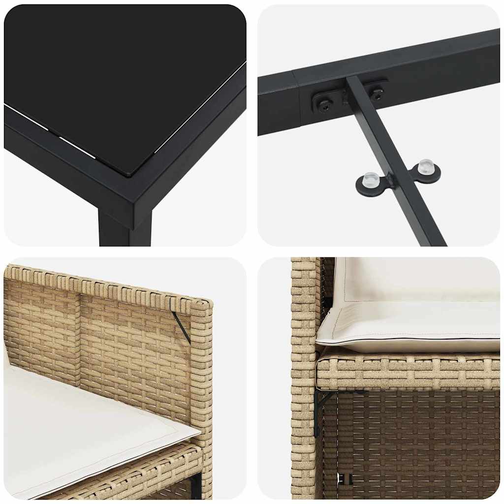 Dieses moderne Garten-Esszimmer Set passt perfekt in den Außenbereich, sei es im Garten oder auf der Terrasse, mit einem klaren und einfachen Design. Es sieht nicht nur gut aus, sondern ist auch super praktisch – die perfekte Wahl für Sommer-Treffen, Grillpartys oder lockere Familienessen im Freien. Die stilvolle Mischung aus Poly-Rattan und Stahl vermittelt ein modernes, aber zugleich gemütliches Gefühl und bringt einen zusätzlichen Charme in jeden Garten. Moderne Materialien: Gefertigt aus einer cleveren Kombination von Poly-Rattan und Glas, überzeugt dieses Garten-Esszimmer Set durch sein cooles Design. Poly-Rattan ist robust, wetterfest und behält seine Farbe. Die Glasoberflächen sorgen für einen schlanken, modernen Look, der im Freien toll aussieht und einfach zu reinigen ist. Vorgesehene Elemente: Das Set kommt mit allem, was du für ein entspanntes Esserlebnis brauchst. Bequeme Sitze mit Poly-Rattan-Rückenlehnen und Armlehnen bieten großartigen Halt, dazu ein geräumiger Tisch mit Glasplatte für einfaches Essen. Die stabilen Stahlrahmen und das Pfostenben-Design sorgen zusätzlich für Stabilität. Benutzerfreundliches Design: Mit seinem minimalistischen Look in glänzendem Schwarz fügt sich das Set mühelos in alle Außenstile ein. Der Aufbau ist kinderleicht dank einer klaren Anleitung, die es dir einfach macht. Du kannst das Set problemlos umstellen, ganz nach deinem Stil oder Anlass. Vielseitige Anwendungen: Das Set ist perfekt für gesellige Zusammenkünfte im Freien in Gärten, auf Terrassen oder Patios und passt gut in verschiedene Umgebungen. Egal ob Familienessen, Treffen mit Freunden oder ruhige Abende unter den Sternen – es bietet Komfort und Flexibilität, wo immer du es aufstellst. Solide Pflegehinweise: Um deine Outdoor-Essensituation langfristig zu erhalten, decke die Möbel ab, wenn du sie nicht benutzt, besonders bei schlechtem Wetter oder direkter Sonneneinstrahlung. Mit einfacher Pflege bleibt das Set frisch und bringt weiterhin Freude in deinen Garten.