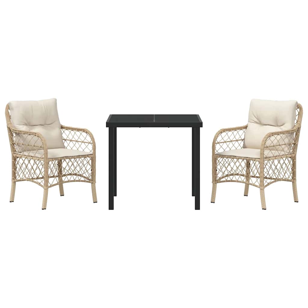 Garten Essgruppe mit Kissen 3 pcs Beige Poly Rattan