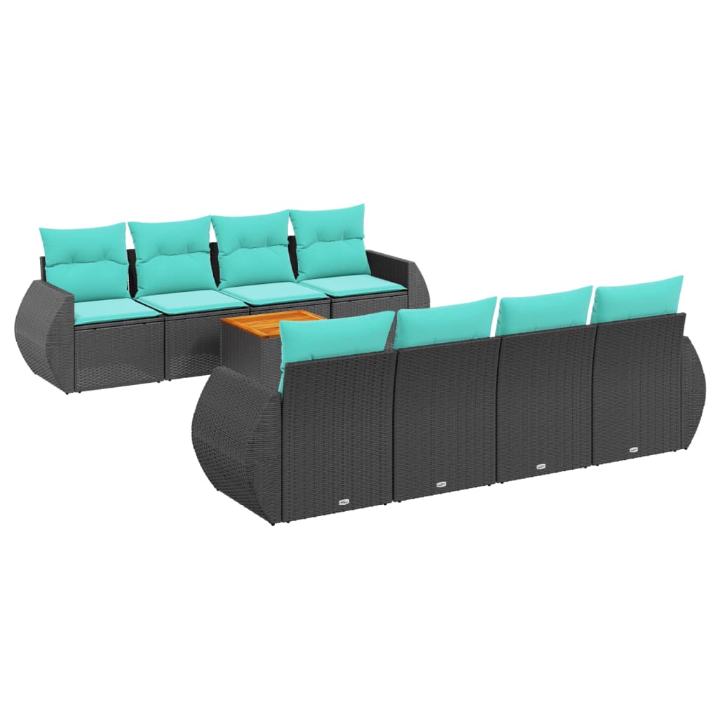 9-tlg. Garten-Sofagarnitur mit Kissen Schwarz Poly Rattan