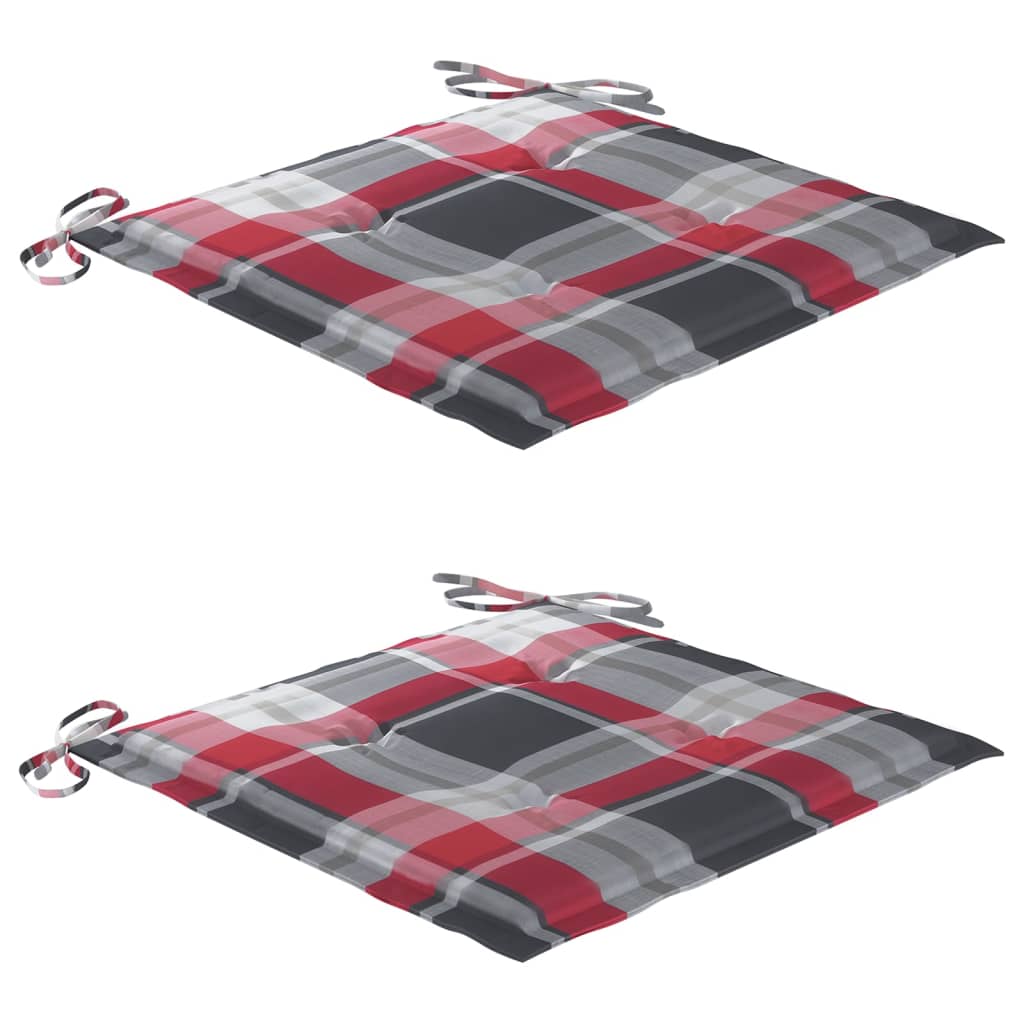 3-tlg. Bistro-Set mit Kissen Rot Karomuster Massivholz Teak
