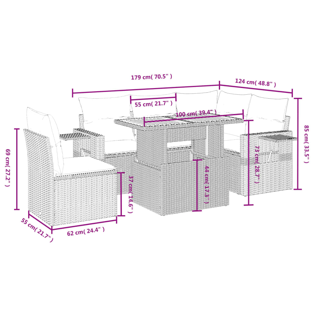 6-tlg. Garten-Sofagarnitur mit Kissen Beige Poly Rattan