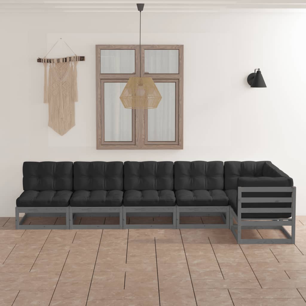 6-tlg. Garten-Lounge-Set mit Kissen Kiefer Massivholz